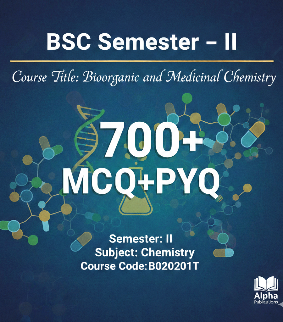 यह प्रश्न बैंक विशेष रूप से B.Sc. द्वितीय सेमेस्टर के छात्रों के लिए तैयार किया गया है, जो Bioorganic and Medicinal Chemistry (B020201T) पेपर की तैयारी कर रहे हैं। इसमें पूरे सिलेबस को ध्यान में रखते हुए 700+ महत्वपूर्ण बहुविकल्पीय प्रश्न (MCQs) शामिल किए गए हैं, जो परीक्षा के दृष्टिकोण से अत्यंत उपयोगी हैं।