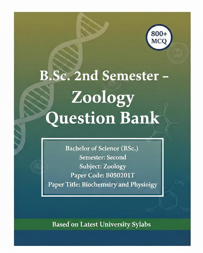 यह B.Sc. द्वितीय सेमेस्टर Zoology के छात्रों के लिए specially तैयार किया गया एक Complete & भरोसेमंद Question Bank है, जो Biochemistry and Physiology के पूरे सिलेबस को सरल, स्पष्ट और परीक्षा-उपयोगी रूप में कवर करता है।