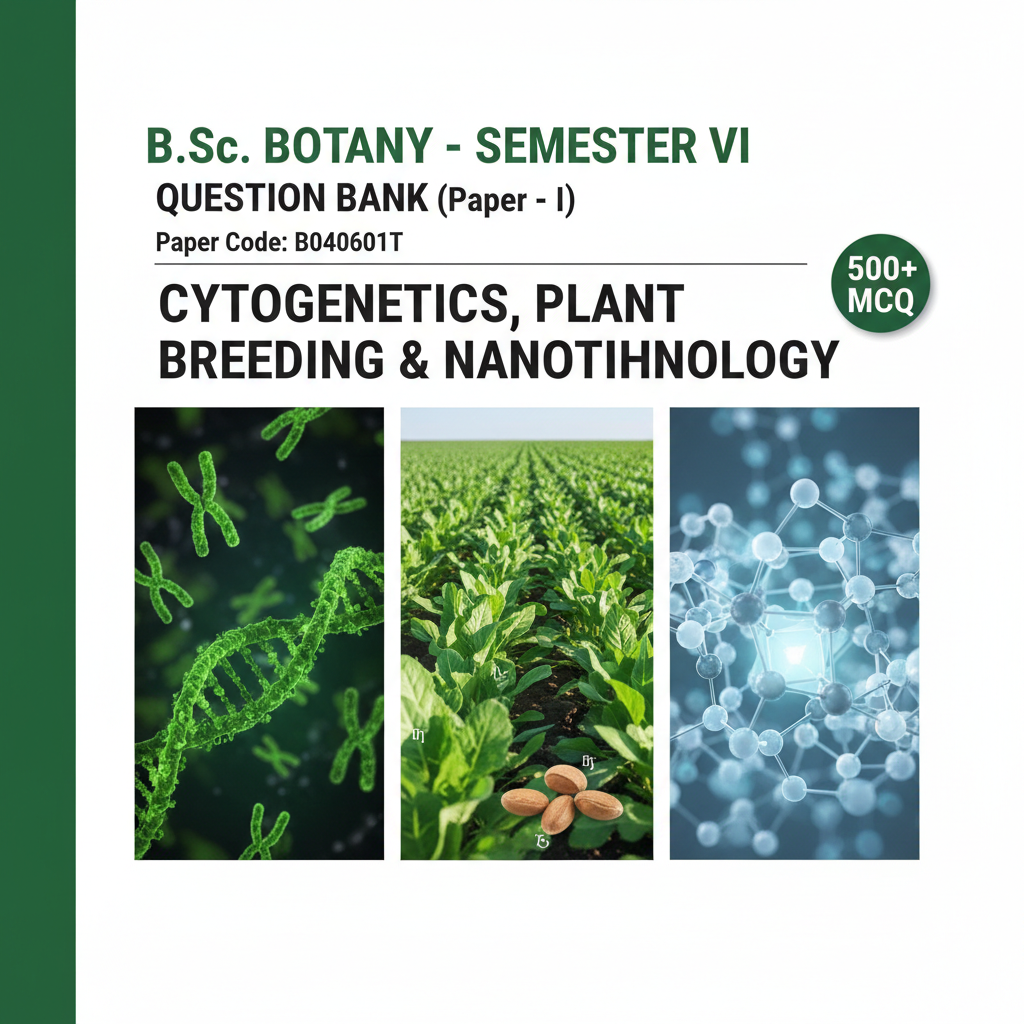 यह B.Sc. Semester VI Botany Question Bank विशेष रूप से उन छात्रों के लिए तैयार की गई है जो Cytogenetics, Plant Breeding & Nanotechnology विषय में बेहतर तैयारी करके परीक्षा में अच्छे अंक प्राप्त करना चाहते हैं। यह प्रश्न बैंक विश्वविद्यालय के नवीनतम सिलेबस और परीक्षा पैटर्न को ध्यान में रखकर तैयार की गई है।