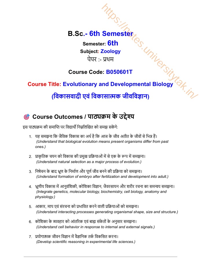 This PDF book is specially designed for B.Sc. 6th Semester Zoology students studying Evolutionary and Developmental Biology (Paper–1) under Course Code: B050601T.